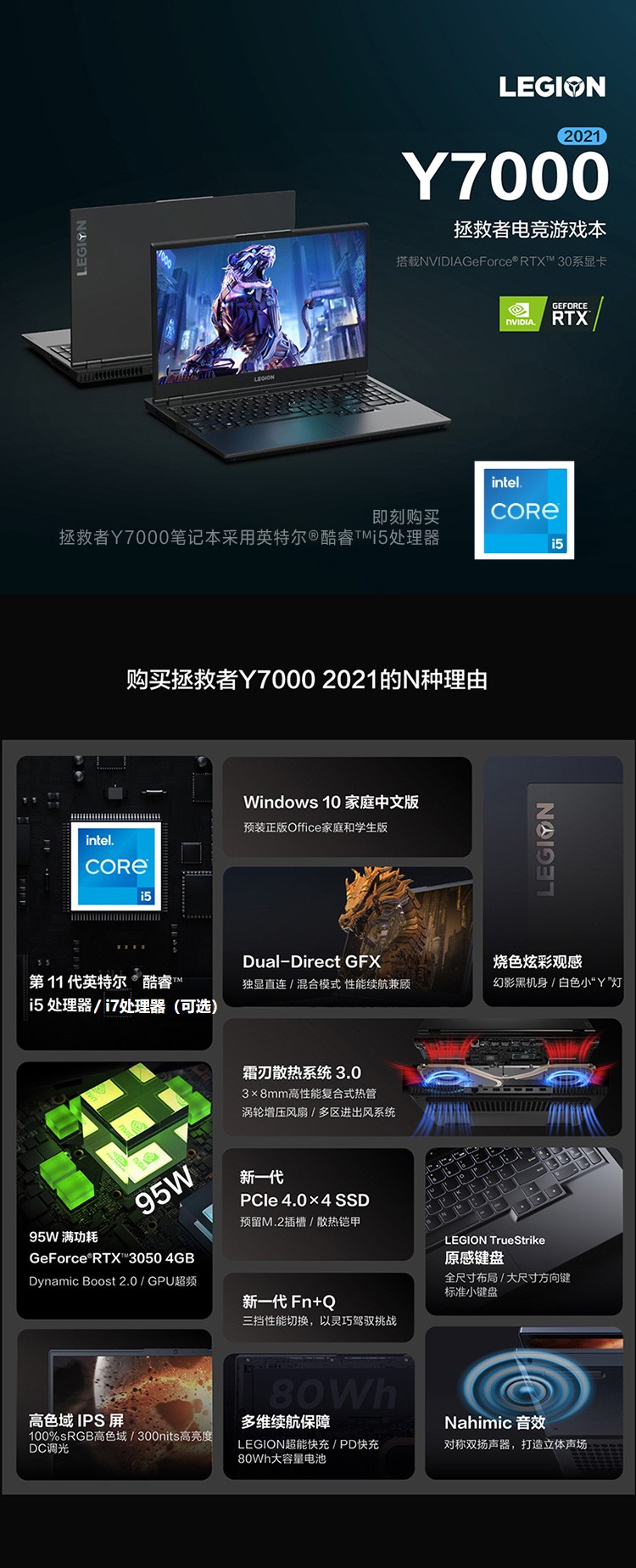 聯想拯救者Y7000 p圖設計2021 i7-11800H/16G/512G RTX3050-4G電競顯卡